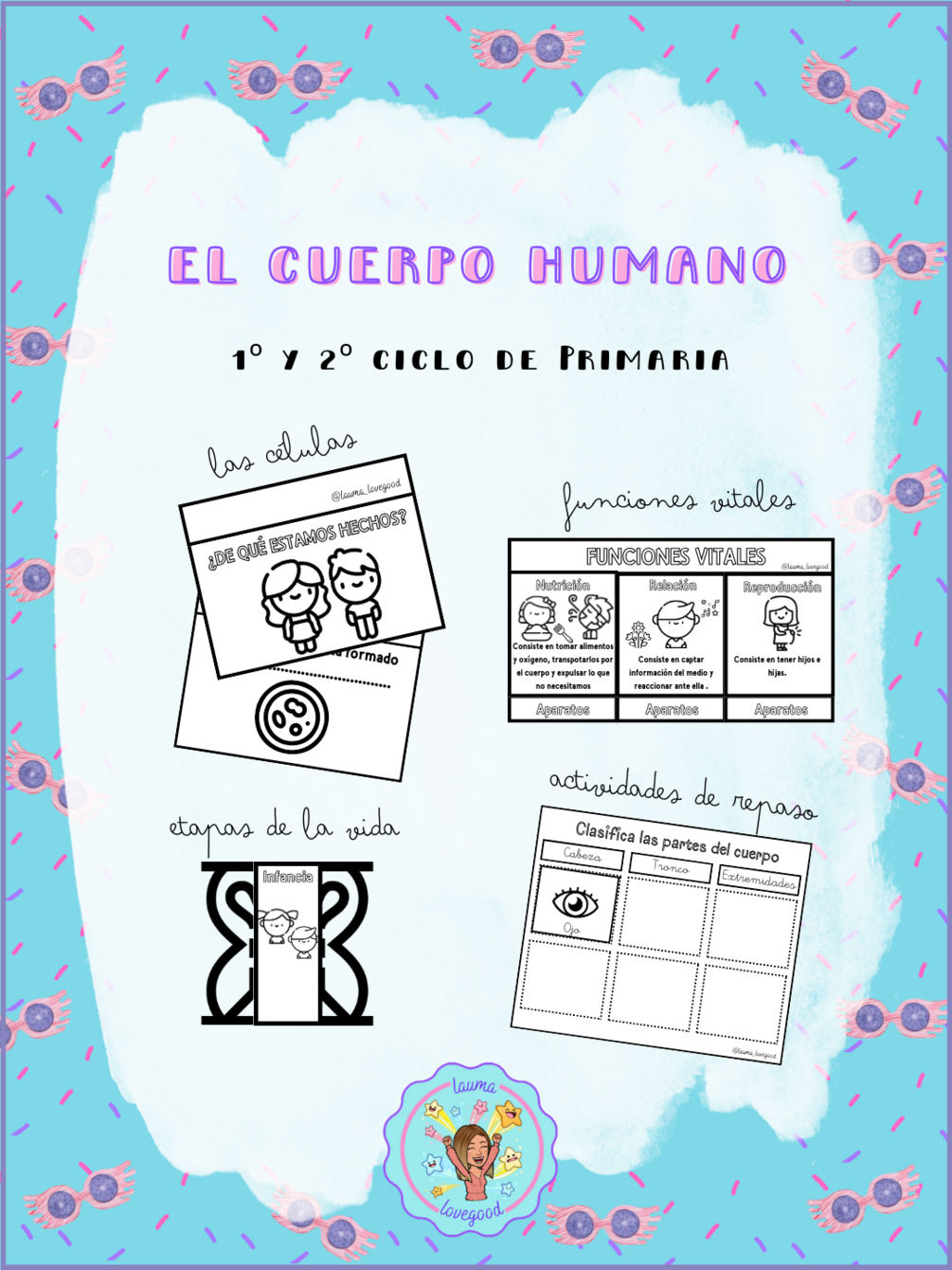 Es un material para trabajar el cuerpo humano en el 1º y 2º ciclo de Primaria. Incluye: