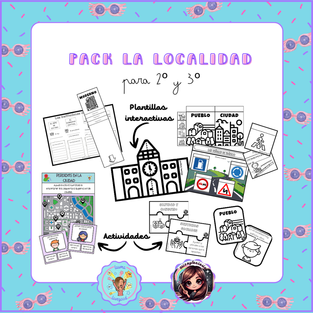 Incluye foldables y material manipulativo para trabajar el tema de la localidad. Entre los apartados se encuentran: tipos de localidades, señales de tráfico, el ayuntamiento, los servicios municipales,...
