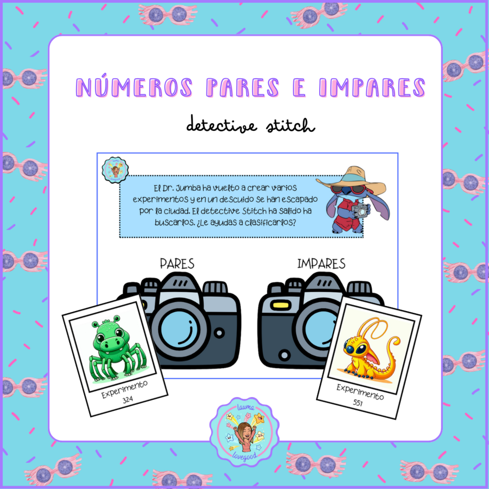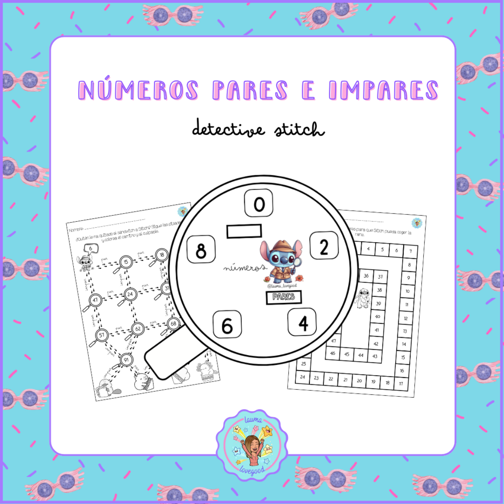 Material para trabajar los números pares e impares con la temática de Stitch. Incluye: